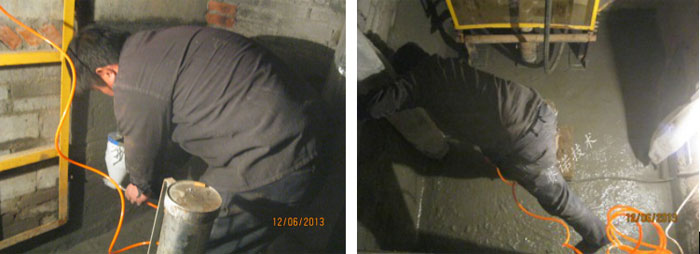 3、12小时后复查,如有局部仍然漏水,可采用YY-16闪凝浆料快速止水处理,再次喷涂YYA特种防水抗渗浆料2遍。